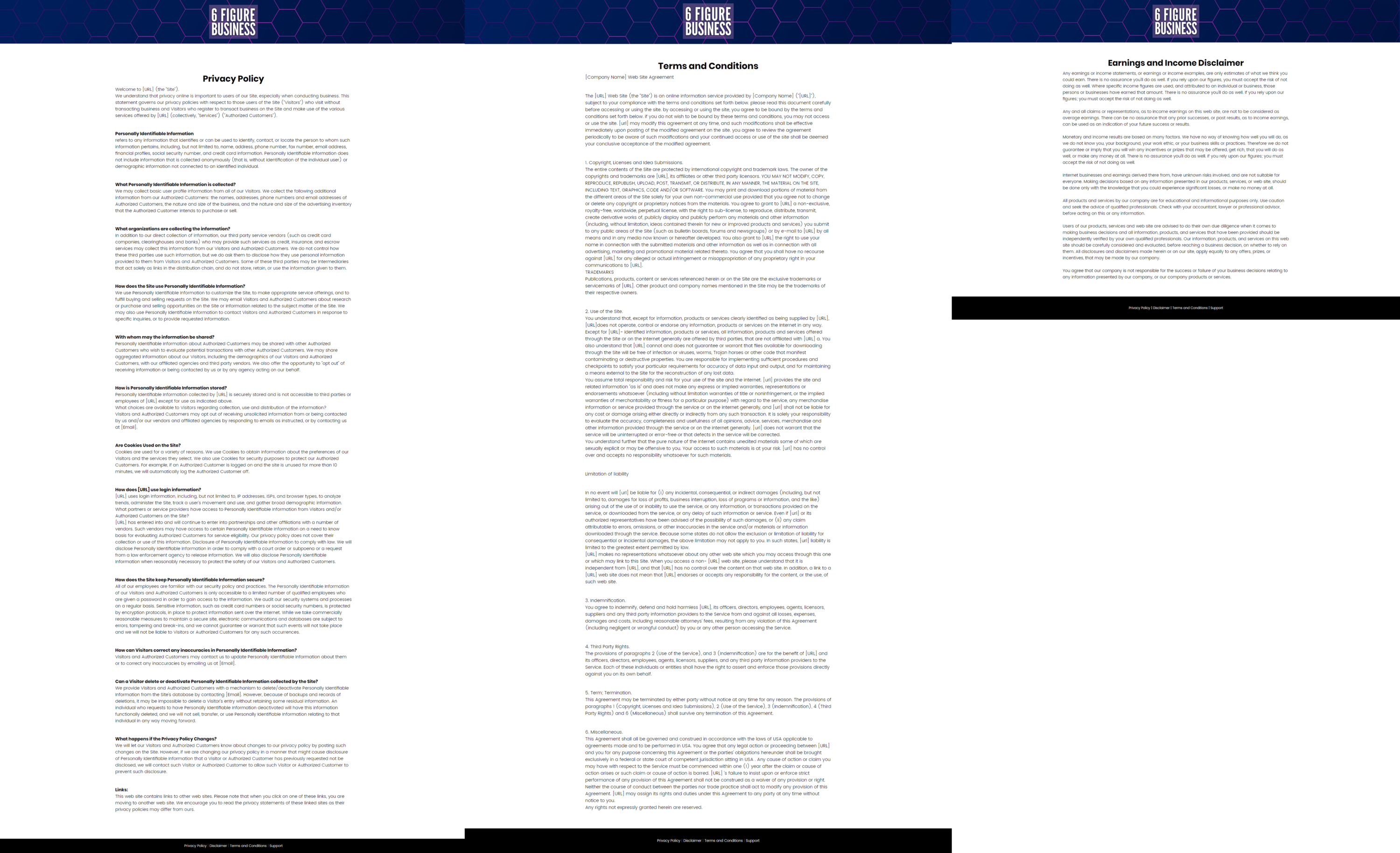6 Figure Business Ebook is a unique and completely updated 10,000 + words Training Guide. it's up-to-date, informative, and includes the most useful, cutting edge information on 6 Figure Business.