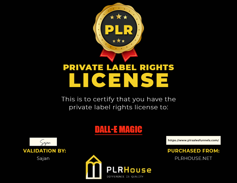 This isn't just a product; it's an opportunity. An opportunity to take high-quality, in-demand content and make it your own. With our generous PLR license, you have the ability to rebrand, edit, or even break apart the components of "DALL-E Magic" to fit your specific needs and business goals.