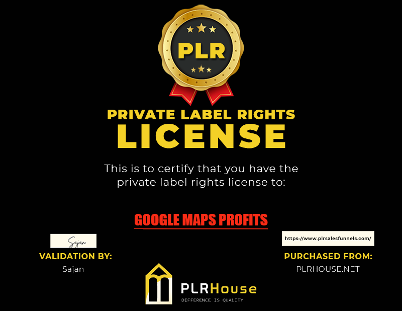 This isn't just a product; it's an opportunity. An opportunity to take high-quality, in-demand content and make it your own. With our generous PLR license, you have the ability to rebrand, edit, or even break apart the components of "Google Maps Profits" to fit your specific needs and business goals.