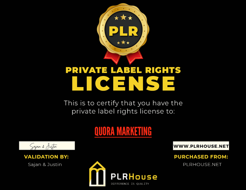 A. You get full rights to add your name and claim the content as your own. You are free to sell the course anywhere or in any way that you see fit. Pretty much the only thing you can’t do is pass on the PLR rights to your buyers.