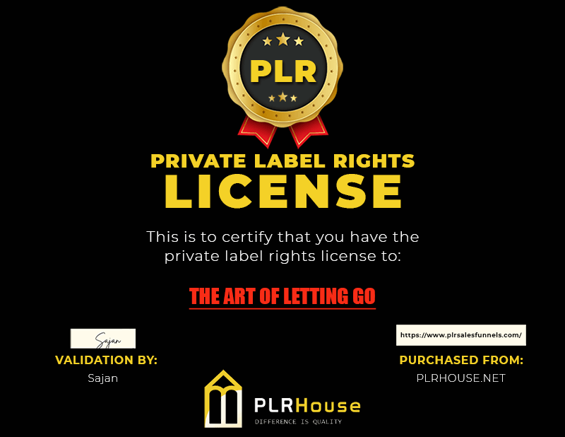 This isn't just a product; it's an opportunity. An opportunity to take high-quality, in-demand content and make it your own. With our generous PLR license, you have the ability to rebrand, edit, or even break apart the components of "The Art of Letting Go" to fit your specific needs and business goals.