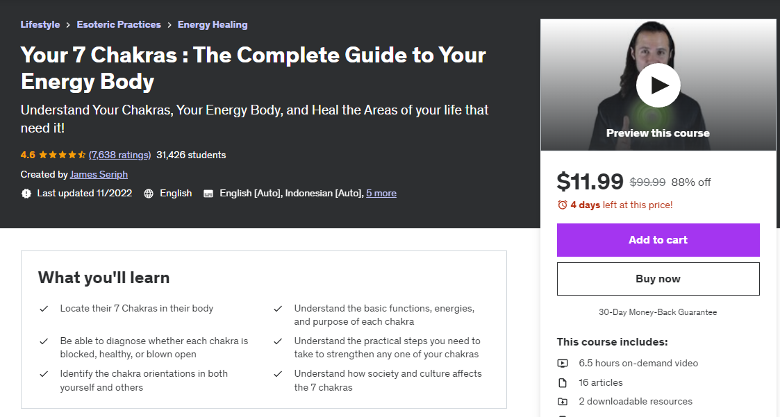 "Your 7 Chakras: The Complete Guide to Your Energy Body", currently boasts an astounding 31,426 students